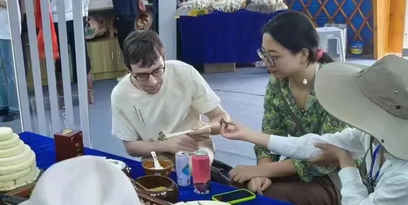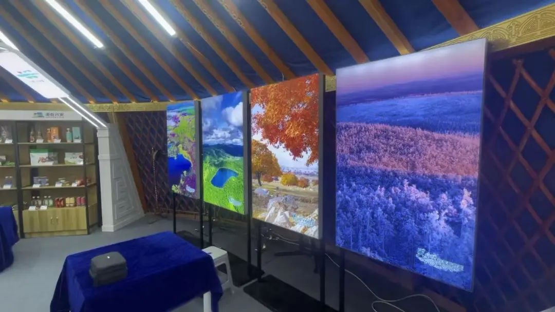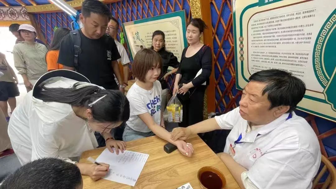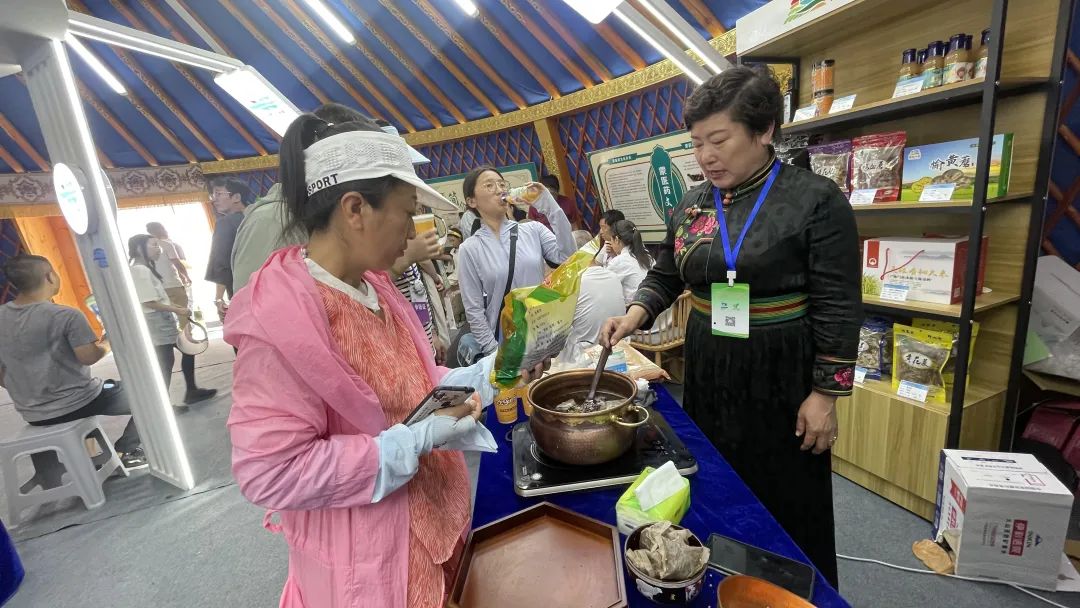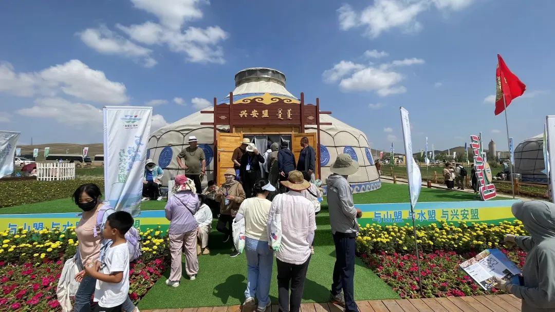 此次那达慕大会,兴安盟蒙古包以“与山盟 与水盟 与兴安盟”为主题,整体设计突出兴安盟自然风光、红色文化、民俗民风等元素,分为旅游宣传、蒙医义诊、农特产品展示、非遗产品展示、文创产品展示等五个区域,宣传媒介循环展示兴安盟旅游风光,科尔沁蒙医药浴疗法国家级传承人、全国最美乡村医生王布和开展义诊,农特、非遗、文创区展示销售兴安盟大米、万佳系列产品、五角枫籽油、牧民烧肉、五角枫银器、羊毛毡工艺品等商品200余种,吸引全国各地游客在兴安盟蒙古包打卡、购物、体验。
