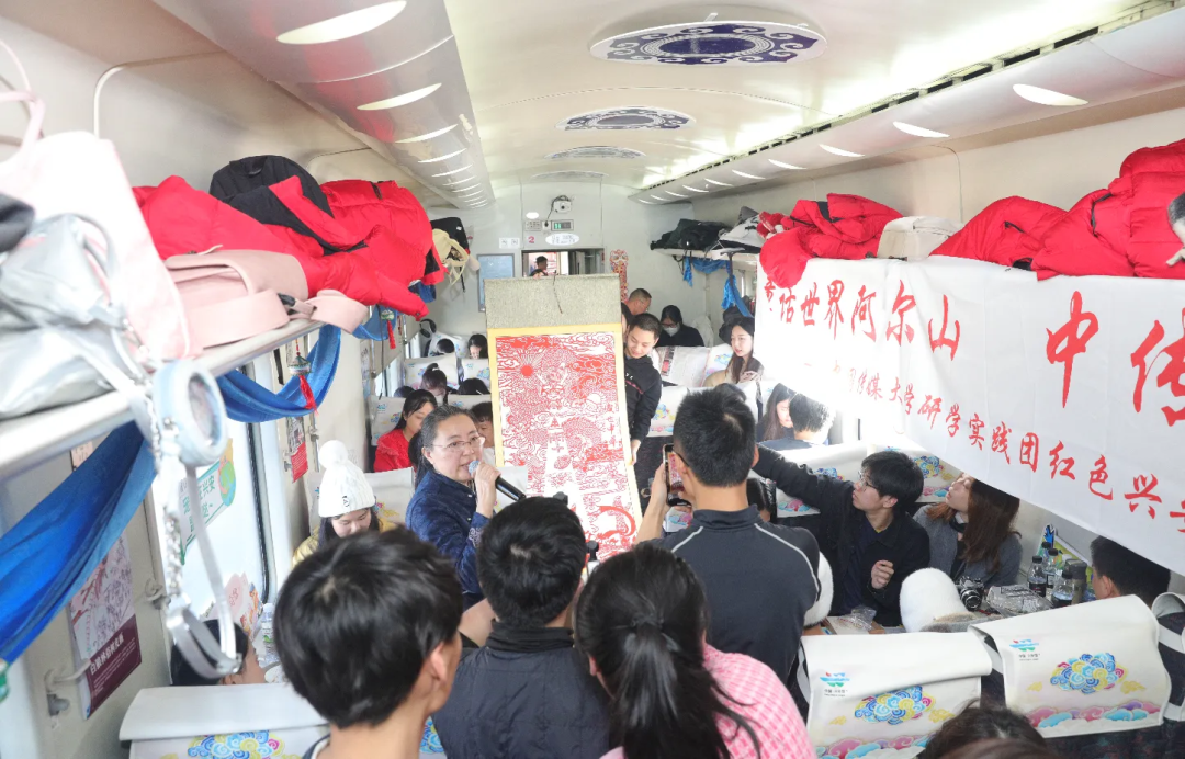 1月24日,K7595次“歌游内蒙古 梦幻阿尔山”冬日主题列车,从乌兰浩特市缓缓开出,驶向童话阿尔山,从活力四溢的歌舞表演到动人心弦的乐器演奏,再到独具特色的非遗文化展示,每一个节目都展现了出多元的艺术魅力,来自三所高校的师生们与队员们同台献艺,学习舞蹈动作,进行了民族知识问答环节,大家其乐融融营造出热烈而喜庆的氛围。