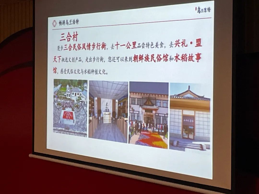 随后,凤城市、本溪县文旅局及景区负责人纷纷对当地特色景区及优惠政策进行了详细介绍。乌兰浩特市文化旅游体育局副局长关晟也代表乌兰浩特市进行了旅游资源推介。她详细介绍了乌兰浩特市的自然风光、人文景观、历史文化以及丰富的旅游资源,并诚挚邀请凤城、本溪的游客前来乌兰浩特市观光旅游,感受这座城市的独特魅力。