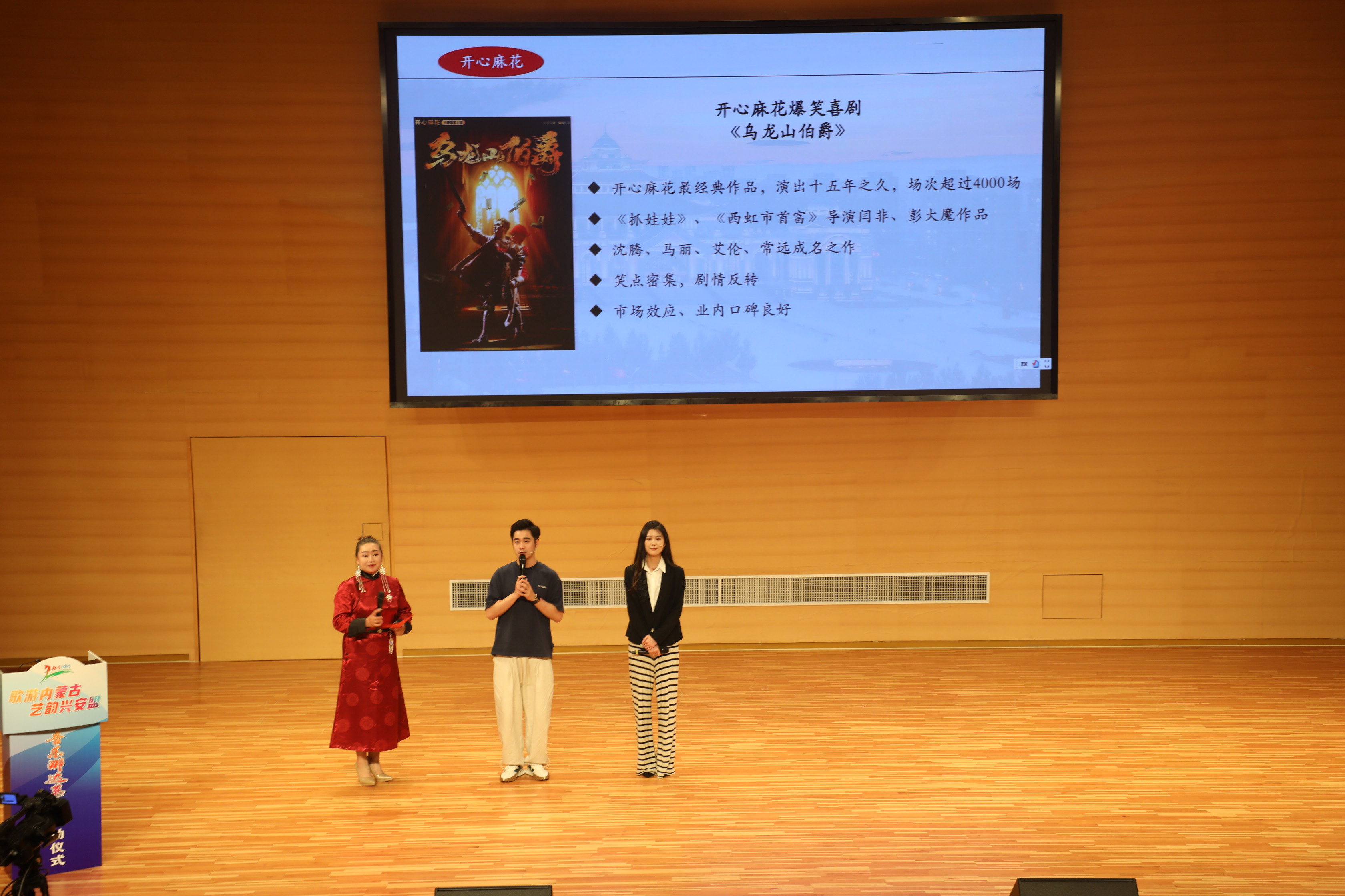 启动仪式上,兴安盟乌兰牧骑的热场节目精彩纷呈,为活动注入欢乐氛围。现场先后进行了兴安盟文旅推介、《剧院里的那达慕》多彩大剧院欢乐演出季推介,开心麻花演员代表还介绍了爆笑王牌喜剧《乌龙山伯爵》的演出详情,并为兴安盟文旅事业送上美好祝福。随后,与会领导共同上台启动系列活动,标志着这场文化盛宴正式开启。