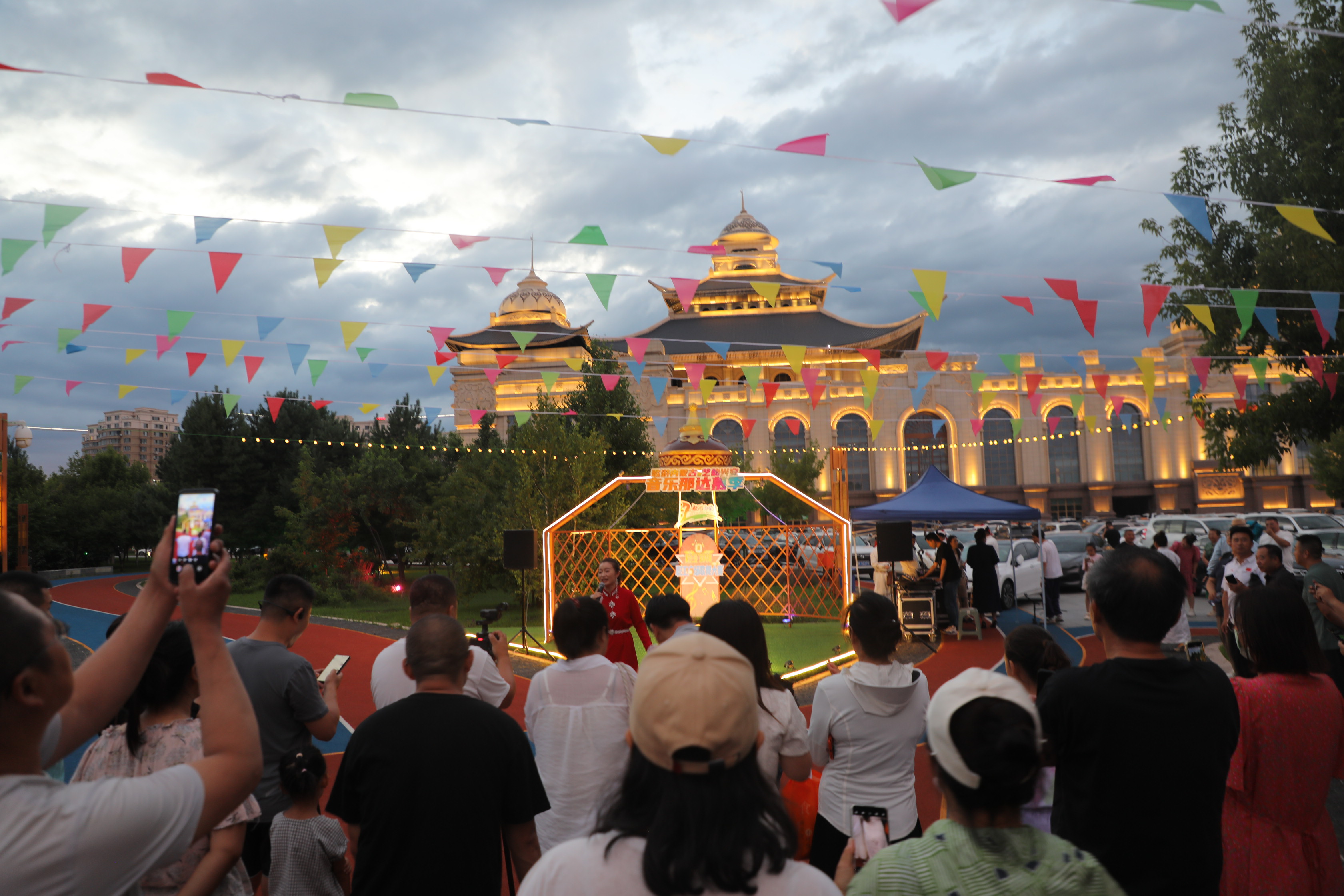 乌兰牧骑宫南侧小广场上,马头琴声悠扬回荡,蒙古包造型的背景尽显民族风情。首场兴安之夜音乐会在兴安盟乌兰牧骑演员的有氧歌声中揭开序幕。热闹的场景吸引周边的市民围观。兴安之夜音乐会将每日19:30至20:30在此上演,兴安盟乌兰牧骑和文化馆的专业演员轮番登台,还邀请市民、游客及非遗传承人参与互动,成为市民休闲娱乐的热门去处。