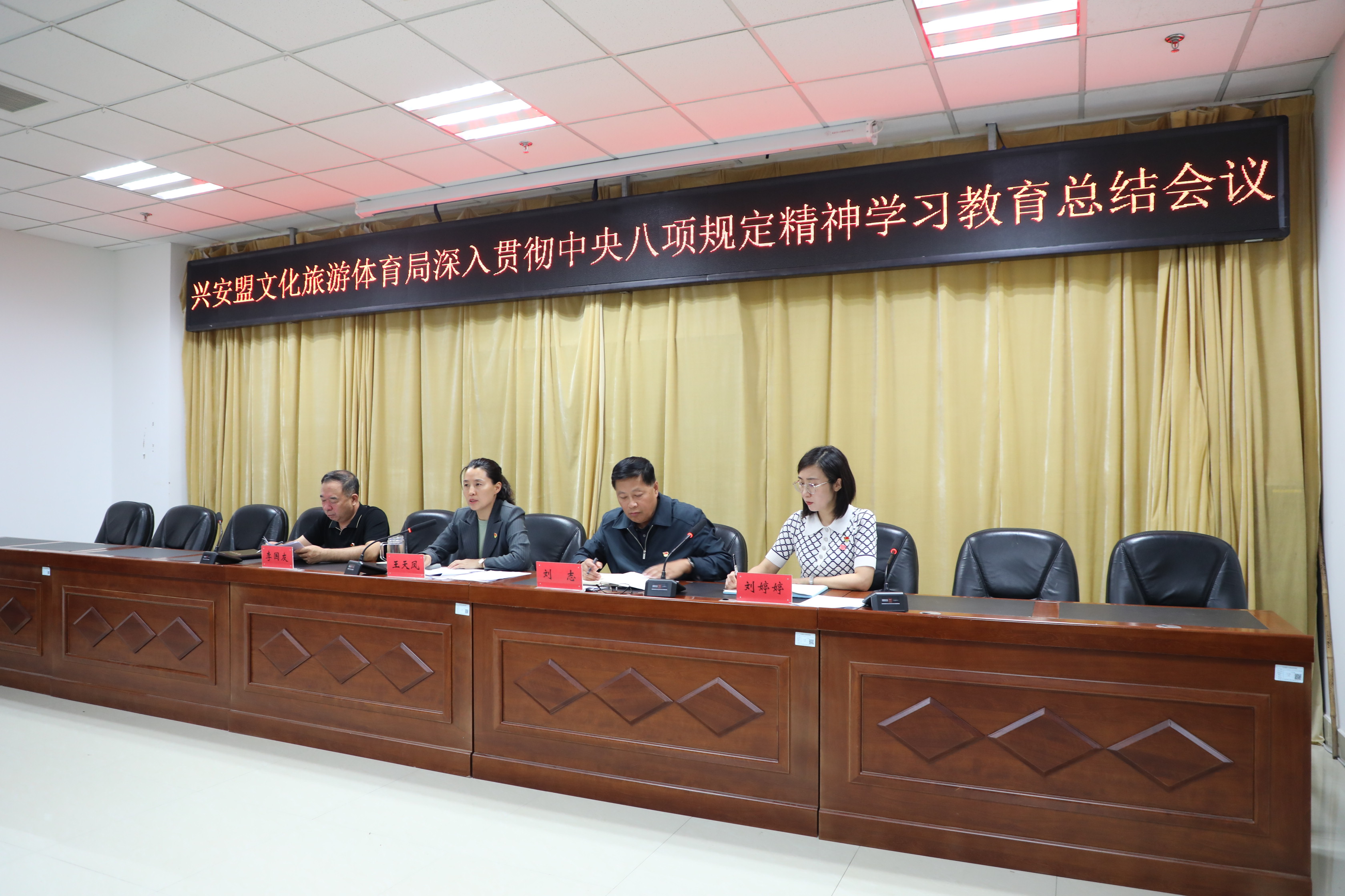 9月11日,兴安盟文化旅游体育局召开深入贯彻中央八项规定精神学习教育总结会议,党组书记、局长王天凤主持会议,在家班子成员、直属各单位负责人、局机关全体干部职工参加会议。