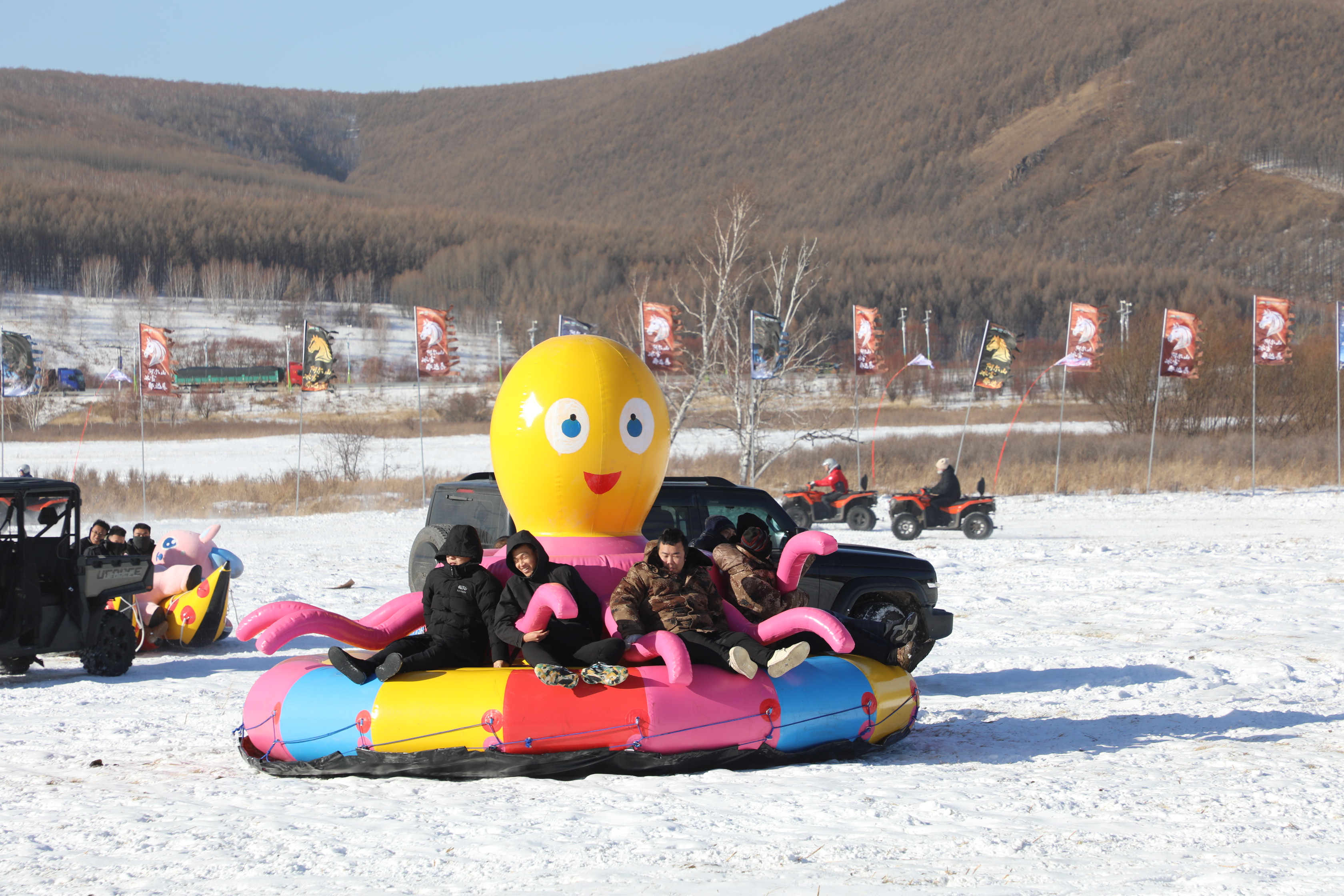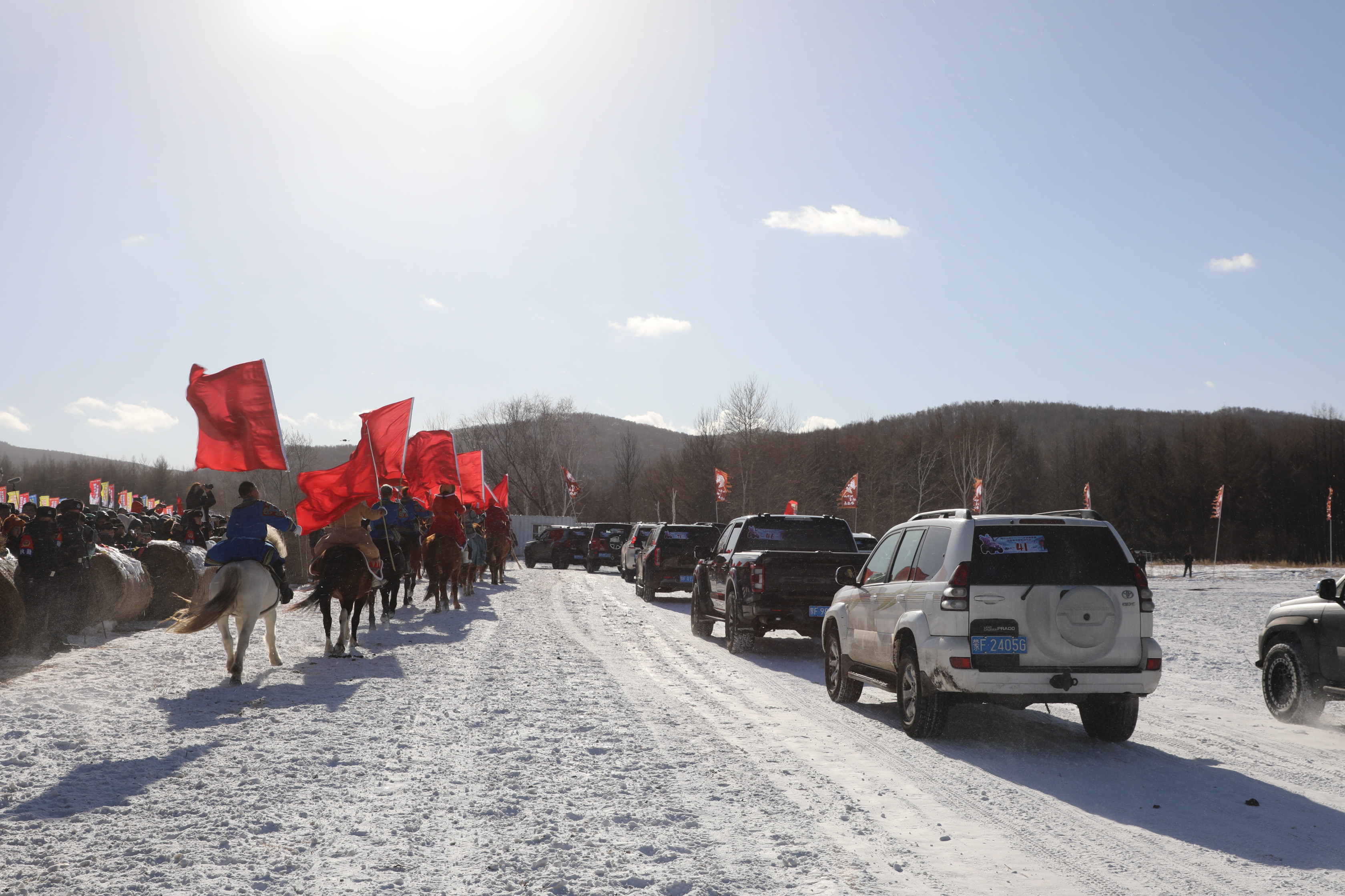 启动当天,第二届冰雪那达慕开幕式暨冰雪赛道汽车拉力赛发车仪式同步举行,活动现场百米哈达在乌兰牧骑演员们的曼妙舞姿中迎风招展,尽情展现草原人民的热情与好客,马术表演、越野车参赛方队、ATV摩托车方队、坦克300雪地互动方队、UTV香蕉船方队、越野车方阵走秀等环节精彩呈现,尽显草原风情与冰雪运动魅力。作为亮点活动的“泉雪嗨啤·情暖中俄”温泉啤酒派对,融合了俄式美食、中式啤酒与互动游戏,为游客带来独具特色的游玩体验。