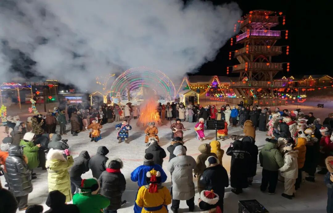 假期期间,为满足游客多样化需求,阿尔山国家森林公园推出了丰富的特色活动,“不冻河漂流”在零下35℃的极寒中持续升温,游客乘筏穿行于蒸腾雾气之间体验水上激情。冰雪玩法亦全面升级,新年烟花秀、雪地足球超级联赛、乌兰牧骑节目演绎、啤酒嘉年华挑战赛、火壶非遗表演、篝火狂欢、雪地大蹦迪等,进一步丰富了冰雪旅游体验。