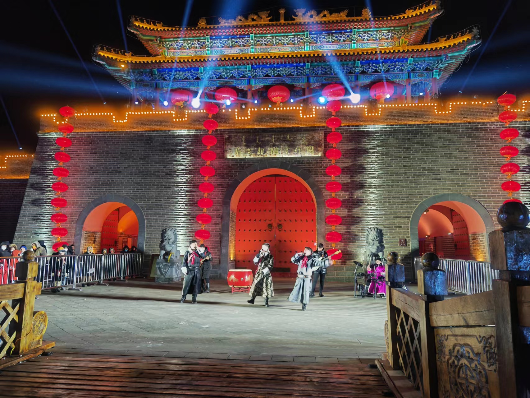 科右中旗则以图什业图亲王府为核心,枫雪光影秀点亮新春夜空,沉浸式演艺、乌兰牧骑民歌剧轮番上演,马元素、石榴灯组等网红打卡场景,尽显民族特色与新春韵味。